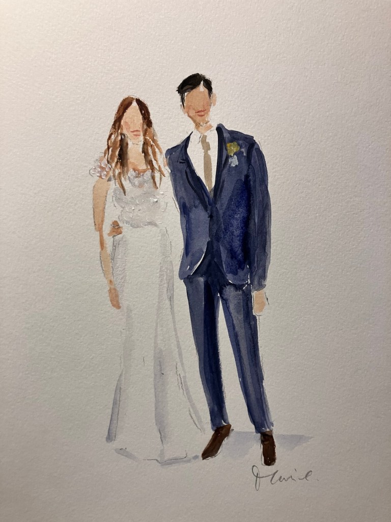 As a live wedding illustrator I get to meet people from all over the world. I met some wonderful people from USA and Greece who came to chat whilst I painted.