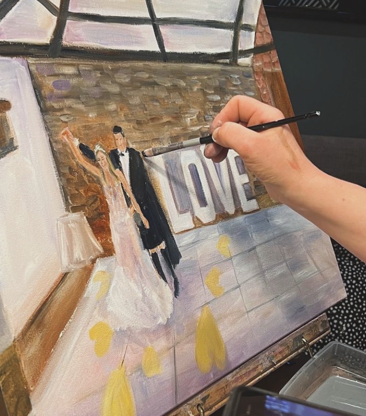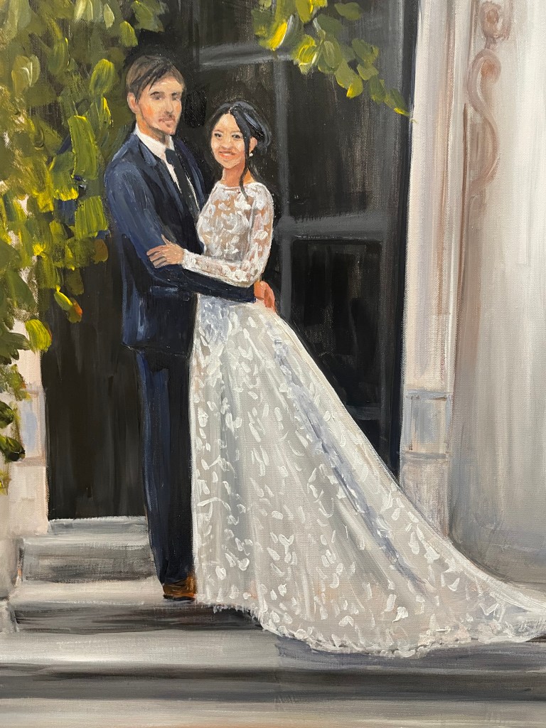 - Tell me your story: Every painting begins with your story. Whether you imagine a sweeping scene of your ceremony, an intimate moment during your first dance, or a vibrant impression of your guests celebrating on the lawn, we’ll begin by understanding your vision for your painting.