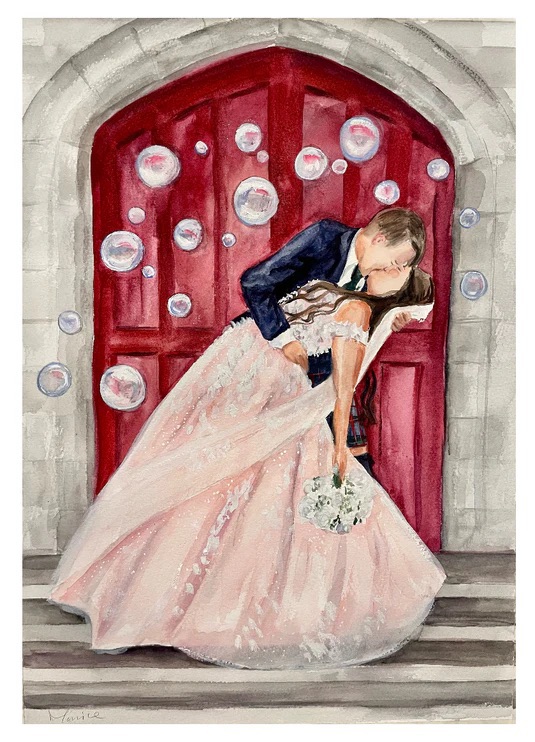 As a wedding painter in Scotland, I paint your memories from your photos in my studio.